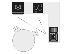 Ce point concerne principalement les cuisines avec îlot, en couloir ou parallèles.