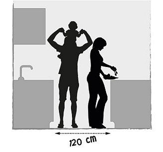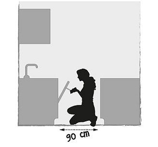 Nous vous conseillons vivement de conserver une largeur de couloir supérieure à 90 cm afin d’ouvrir facilement les éléments de la cuisine (placards ou four). Pour les familles nombreuses, l’écart idéal est de 120 cm minimum.