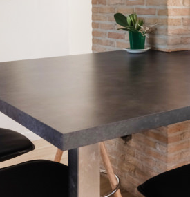Le plan de travail compact est composé d’une superposition de papier kraft imprégné de résine. C’est un stratifié à haute pression réputé pour sa finesse et sa haute résistance. Il faut compter une épaisseur de 12 mm. C’est justement cette finesse et ce design très léger qui est fort apprécié. Il apporte un look très moderne. Outre son design, sa force est aussi dans sa technique de fabrication qui lui confère de multiples atouts :